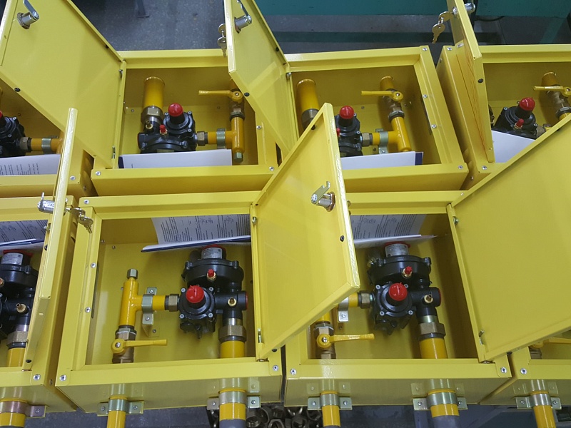 ООО ЭЗОТ «Сигнал» выпускает пункты редуцирования газа в трёх исполнениях: ГРПШ (в шкафу), ГРУ (на раме), ГРПБ (в блок-боксе).